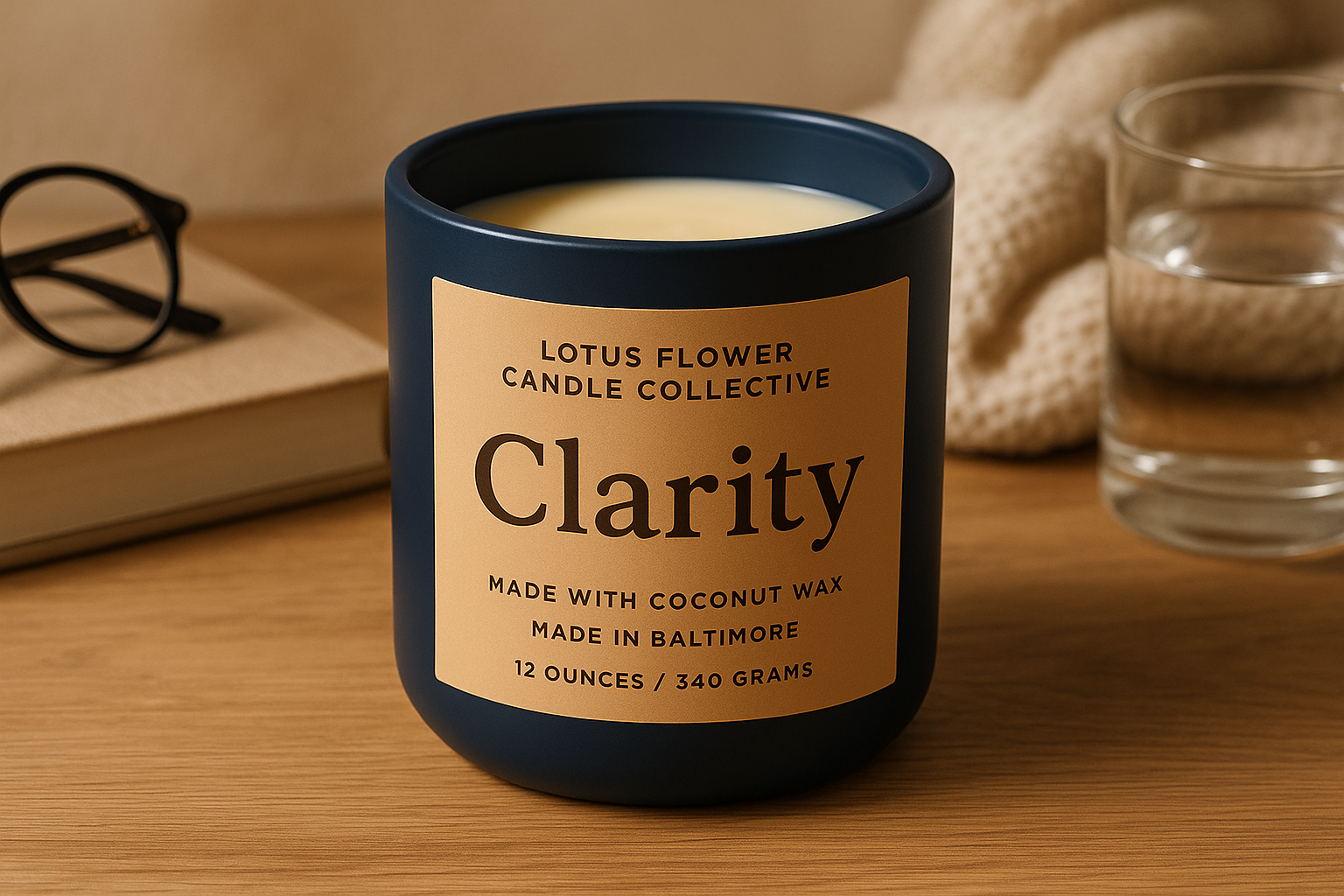 Clarity is a calming blend of eucalyptus, lavender, and driftwood—designed to clear mental fog and open your inner voice. Housed in a matte blue glass vessel, this candle brings peace to your mornings, your journaling corner, or your quiet rituals of renewal.